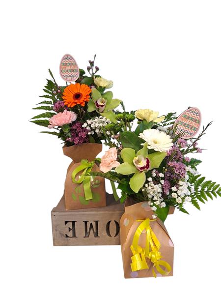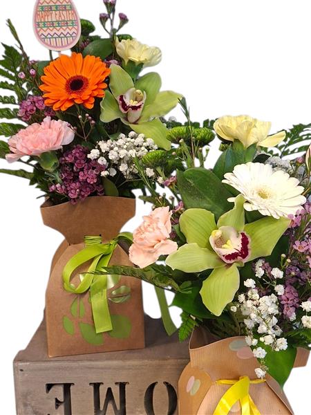 A beautiful posy of seasonal blooms themed for easter please note colours may vary